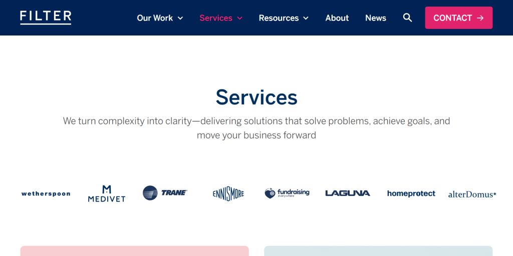 Filter agency is a UK-based service provider that has been making the digital marketing and web development waves for the past eight years. Their offerings are quite comprehensive, including digital strategy and planning, UX & UI design, WordPress development, conversion optimization, building WooCommerce-powered online stores, and more.